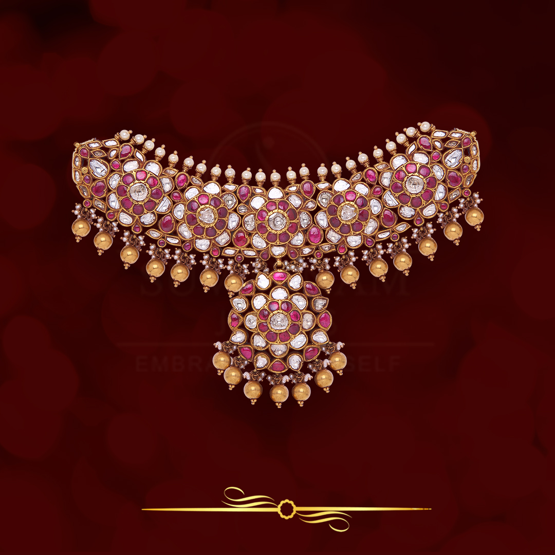 And we also specialize in designing exclusive Polki sets in Hyderabad, Kundan Gold Jewellery in Hyderabad. Visit us now to Buy Ruby Jewellery in Hyderabad.